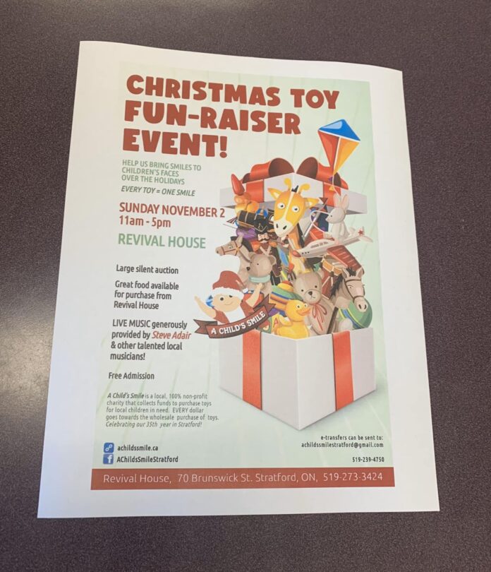 Jamie: Nice to check in with John Gray from A Child’s Smile. It’s their 35th year in Stratford helping bringing smiles to children’s faces over the holidays with toys. John tells us how you can make a monetary donation and about the Christmas Toy Fun-raiser Event in November: