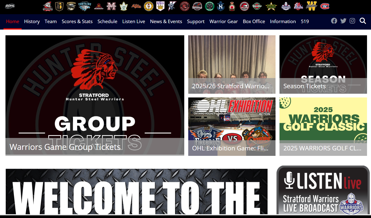 A screenshot of the Stratford Warriors’ website shows current and historical branding.