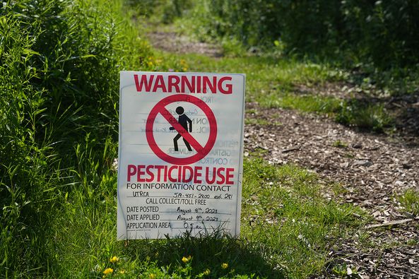 Staff from the Upper Thames River Conservation Authority are spraying herbicide to control Japanese Knotweed and Phragmites, species that can choke out wetlands and reduce biodiversity.